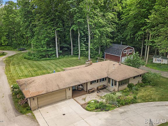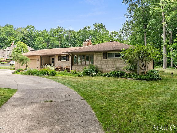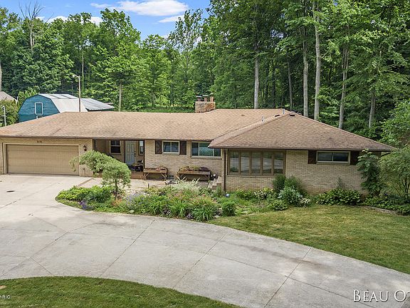 This 3-bedroom, 2.5 bath brick ranch home features over 2,500 finished sq ft & is situated on a beautifully manicured 1.4-acre wooded lot that backs up to Grand River Park in award-winning Jenison Schools! New geothermal heat pump, well, septic system, back concrete patio, & vinyl plank flooring are just a few of the updates the current owners have completed. The home includes an entry/mudroom & conveniently located half bath, large open kitchen with island (all appliances included), custom re-finished built-in cabinets, dining room, living room w/ large picture window overlooking the tranquil backyard, front 3 season room with plenty of windows bringing in loads of light, dedicated office, master bedroom, 2 additional bedrooms & a full bath. The lower level has a huge finished rec room with fireplace & built-in cabinets, bonus room or 4th non-conforming bedroom, full bath & a large laundry/mechanical room with an abundance of storage. Other extras include a 2- stall attached garage w