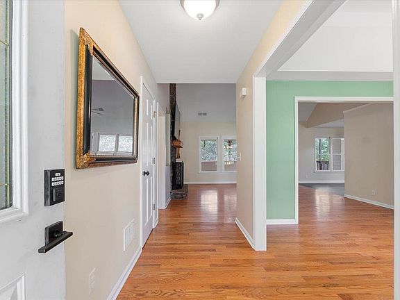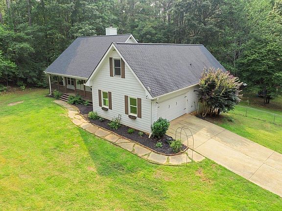 Set on 10 mostly wooded acres, this charming home offers privacy, space, and modern upgrades-just minutes from the interstate. Enjoy the large covered front porch, sunroom overlooking the fenced backyard, and level land with open pasture, hardwood trees, and a fenced stable area-ideal for a mini farm or equestrian use. The home features a vaulted family room with a stacked stone fireplace, owner's suite with clawfoot tub and tiled shower, two additional bedrooms and a full bath on the main level, plus a large bonus room upstairs. The full daylight basement includes a second living area, two bedrooms, full bath, and garage access with storage. The home is equipped with high-speed internet, making it easy to work from home or stream without interruption. Recent updates include a new Goodman HVAC, heat pump with dehumidifier, thermostat, water heater, water filtration and softener systems, radon mitigation system, and well pump. A perfect blend of comfort, function, and rural charm!