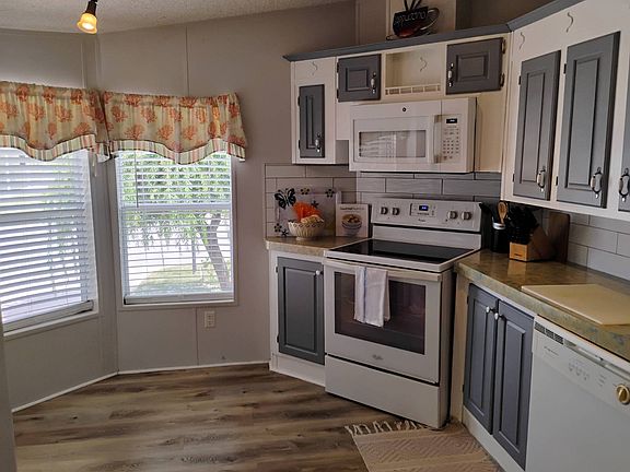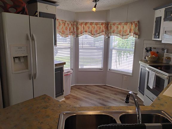 PRICED TO MOVE QUICK!!!! No Mobiles behind you gives privacy to the backyard, You cannot find a home more Charming as this 2 Bedroom, 2 Bathroom Home with Upgrades! This well-maintained home features a spacious screened-in porch perfect for relaxing or entertaining. Recent upgrades include a sliding glass door, double-pane windows, attractive laminated flooring, updated lavatories and sinks, and newer appliances. The A/C unit is just 8 years old and has been routinely serviced. Additional features include a water softener system and durable concrete skirting for added stability and curb appeal. Don't miss out on this beautifully updated home! Lot rent includes Sewer, water, trash, pool, and clubhouses