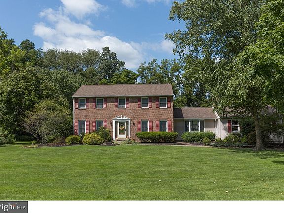 Set on over acre in Buckingham township this wonderful updated colonial is full of detail and design. Enter the front door where hardwood floors lead the way to a completely updated kitchen with granite countertops, custom cabinetry, stainless appliances with gas cooking and artisan tile backsplash. The main gathering room has a floor to ceiling fieldstone stacked wood burning fireplace and flanked by built in bookshelves. There is a large bay window that fills the room with sunlight, custom crown molding and recessed lighting. The upstairs offers a spacious and well appointed master suite with fully remodeled bath an ample closet space. There are three more generous bedrooms and a freshly renovated full hall bath with tub. Outside is an oasis for relaxing and entertaining. There is a wonderful deck overlooking the in-ground pool with Jacuzzi, paver patio, with sitting area shaded by an expansive arbor. A quiet setting with space, amenities and sunshine! Schedule your personal tour today. Additional note: to the left of the fireplace behind the bookshelves there is a framed out area for a door directly to the garage.
