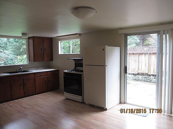 Located in a peaceful setting, surrounded by redwoods, expansive unfenced yard and sunny patio. There is an open floor plan with plenty of natural light. Detached garage and laundry room. Conveniently located between Eureka and Arcata . Applicants must complete a rental application and authorize background and credit check. Utilities not included. Plenty of off street parking. Allow pets but they must be supervised as there is no fence. No smoking. Credit and background checks paid for by applicant.
