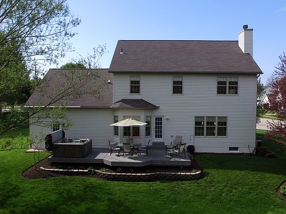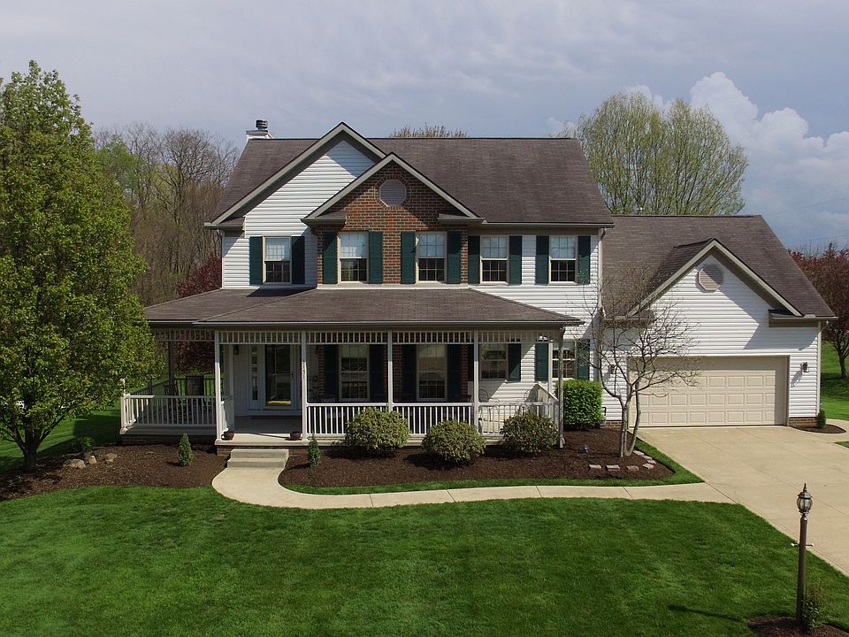 This custom built colonial home boasts 4/5 bedrooms, 3 1/2 baths and 9 foot ceilings on the first floor. Great room connects to the large kitchen with center island and breakfast area. Oak cabinets round out the space with hardwood floors and access to the Trex decking off the rear of the home. The dining room, foyer. half bath and laundry room round out the first floor. The second floor has three bedrooms along with a vaulted ceiling master suite with jetted bath tub, two walk in closets and separate toilet and shower area.. A finished basement with full bath and an office/bedroom complete the interior of this beautifully kept home. Exterior features include a wrap around covered porch, garage with work space, hot tub and invisible fence. A true must see in the Stow area.