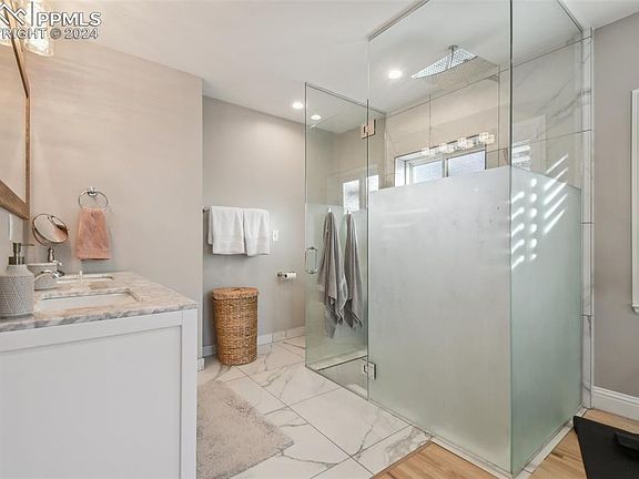 This exquisitely remodeled 3-bedroom, 3-bathroom home, located on a tranquil stretch of Williams Street, falls within the boundaries of the award-winning Cherry Creek school district. The property is a flawless example of modern elegance blended with functional design, embodied in a beautifully restored ranch home. Ideal for entertaining, the home features a layout that extends from the kitchen and living areas to an outdoor oasis, complete with a custom sandstone fireplace and a spacious 1000 sq. ft. brick patio. The gourmet kitchen is a culinary dream, boasting Lumiere leathered quartzite countertops, white raised panel cabinets, and a stylish kitchen backsplash that adds an extra touch of sophistication. Comfort is paramount in the generous primary bedroom, featuring an en-suite with a custom walk-in tub, rain shower, dual vanity, and a direct patio access, creating a serene retreat. The home is upgraded with a new Goodman air conditioner, an Amana furnace, and a Bradford White water heater, ensuring year-round comfort and efficiency. Additional enhancements include a two-car garage, a wood-burning fireplace, air conditioning, new landscaping, and a radon mitigation system for added safety. The backyard is refreshed with new sod, contributing to the updated and inviting outdoor space. Other notable features are a new roof, main sewer line, Samsung appliances, ample storage, a wine fridge, a custom breakfast nook, a powder room, and newly installed hardwood floors. Located in a highly desirable area, the home offers easy access to downtown, Cherry Creek, Southglenn, DTC, and DU, making it a perfect blend of luxury, comfort, and convenience in a sought-after school district.