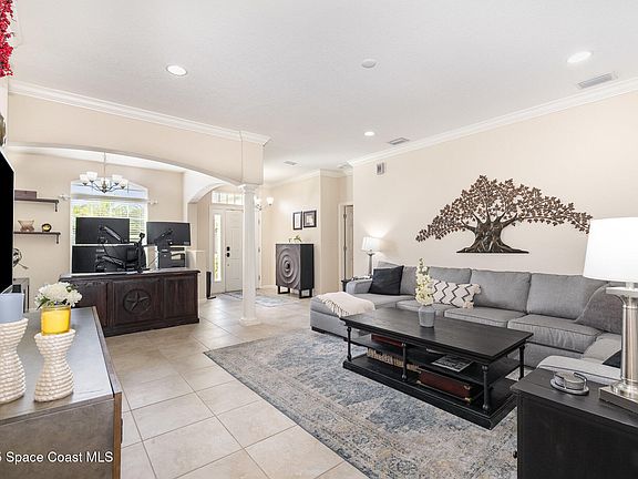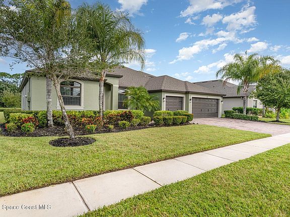 Welcome to 3151 Watergrass Street in West Melbourne! This stunning 5-bedroom, 4-bath home offers an open, inviting floor plan with high ceilings, modern finishes, and abundant natural light. The kitchen features granite countertops, stainless-steel appliances (refrigerator does not convey), and an extended dining counter ideal for casual meals or entertaining. Enjoy the dedicated media/game room, perfect for family fun or movie nights, and a three-car garage providing ample storage. Relax on the screened lanai overlooking a tranquil pond, offering a peaceful setting for morning coffee or evening sunsets. Complete with storm shutters and located near shopping, and major roadways. This home perfectly blends space, comfort, and serenity.