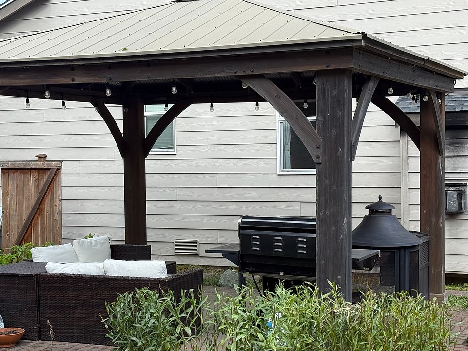 - Landscaped backyard with gazebo and open green space, offering excellent privacy