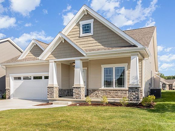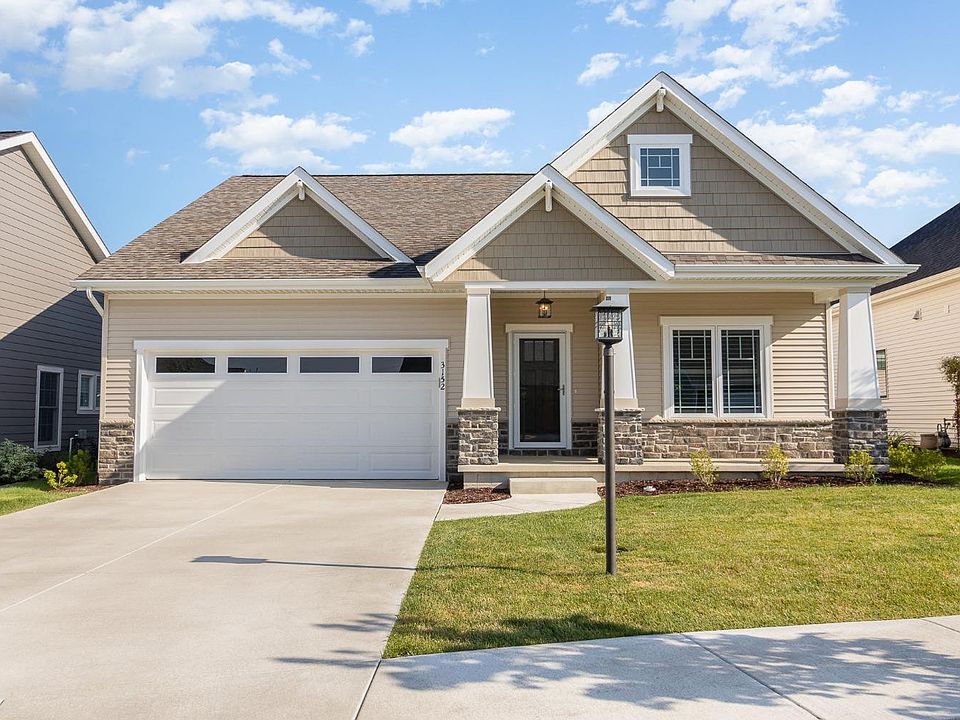 NEW PRICE on this LIKE NEW Ranch Home w/ covered porch! LOVELY open floor plan home has 3 bedrooms, 2 baths & finished, roomy 2 car garage w/ extra attic storage & epoxy floor. Enter to your spacious foyer w/ double closets & lots of natural light. Living area, open to Kitchen, has Fireplace & custom plantation blinds w/ door leading to your 12x12 patio. In your Kitchen are quartz counters, white Maple soft close cabinets, ceramic backsplash, pull out drawers, large center ISLAND, SS Appliances (Stove & Refrigerator BRAND NEW!) & extra large Pantry. Main Bedroom w/ lovely attached Bath w/ceramic tile shower, double bowl vanity & walk in closet that attaches to your Laundry - complete w/ sink and cabinets! 2nd and 3rd bedrooms great for guests or a nice office, & a FULL 2nd bathroom. Fully landscaped Lawn w/ irrigation system. Anderson Storm Doors. HOA provides lawn care and snow removal. Located in Valpo City limits. All in a Wonderful neighborhood setting! Call for your private tour!
