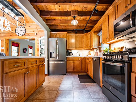This unique property is stunning & a must see. 3 bedroom Log, w/4+car garage & parking space for motorhome. Formal dinning rm, great rm w/gas fireplace, brand new kitchen, 3 full baths, master bedroom in loft. Greenhouse. 2 log sheds, extra wooded lot for privacy, & stream to fish. Generator, 2 zoned heating, gas ceramic stove in basement. Wrap around deck to entertain or just enjoy. All room measurements are approximate, verify for own use. Make this your DREAM HOME! All buyers must be pre- approved & have pre-approval letter with submitted contract.