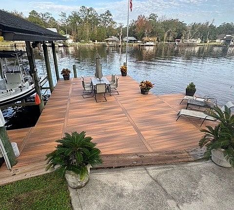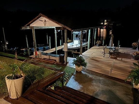 Will CO-OP 2% !!! Beautiful waterfront home located on desirable Black Creek. House has a brand new 40 year architectural shingled roof. 1 brand new air conditioner and 1 unit that is approximately 5 years old. Elegantly designed with 18x18 travertine tile throughout foyer and kitchen. Both upstairs and downstairs expansive 800 square foot lanais also feature beautiful chiseled edge travertine. All bathrooms and kitchen feature solid maple dovetail construction cabinetry. Beautiful granite countertops and 13 foot bar area. All bedrooms come with oversized walk-in closets. The front room could be a formal dining or living room but is currently the family’s pool table room. Master bath has a large shower big enough for two and jacuzzi tub, and dual vanity sinks. Downstairs bedroom could serve as an in-law suite with its own bathroom and entrance. The boathouse and boat lift will accommodate up to a 28 foot vessel. The dock was just redone with beautiful composite deck boards. The yard features beautiful landscaping and an irrigation system, and is fenced and gated with a powered closure system. Family room and massive media room are both wired with surround sound systems. The house also boasts a large indoor laundry room, a walk-in pantry in the kitchen, large finished closet under stairs, a central vacuum cleaner, finished and lighted attic storage area, wire shelving galore in all closets, crown molding throughout, and ornamental iron balusters. The upgrades go on and on and must be seen to appreciate. Again willing to CO-OP 2% to any agent that brings a buyer to successful closing.