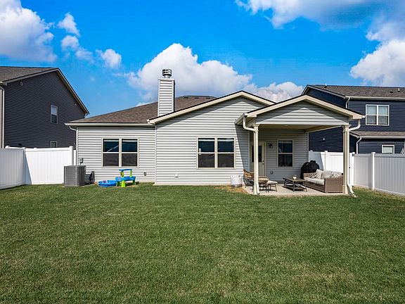 Beautiful, highly sought-after, one-level floor plan home. Just three years old and in immaculate condition; window treatments are already in place and the yard is fenced! Many upgrades. Open concept. Fabulous great room that opens to a well-appointed kitchen, featuring granite counter tops and a highly-functional island. Wood-burning fireplace, perfect to cozy up with a good book. So much storage! Split Bedroom floor-plan that features walk-in closets in both secondary rooms. Covered lanai in the private backyard. Fantastic side-yard garden! This home has been so well cared for, and has great curb appeal. The lawn is lush and the landscaping is beautiful. Turn-key ready, with all appliances staying! Better than new construction -- everything is ready; just bring your furniture and groceries!