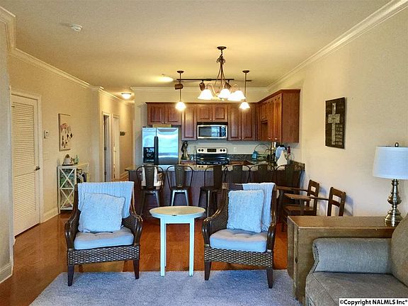 Enjoy breath taking views from Sunset Shores condominiums at Weiss Lake. This beautiful 3rd floor waterfront retreat offers luxury living with high-end interior finishes. The spacious living room has 9' ceilings & opens to balcony with gas-log fireplace, outdoor storage & long lake views. The upscale kitchen features granite countertops & stainless built-in appliances. MBR has his & her closets, an-suite bath with jetted tub & separate shower. Two guest BR's share a second bath. Convenient laundry room. The lakeside amenities include an inviting lap pool with tranquil waterfall, a walking track along waters edge & community boat slips.