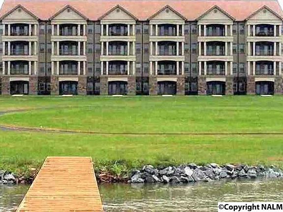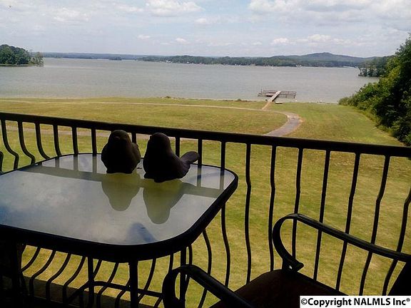 Enjoy breath taking views from this beautiful Sunset Shores condominium on Weiss Lake. The 3BR/2BTH waterfront retreat offers luxury living with high-end interior finishes. The spacious living room has 9' ceilings & opens to a balcony with gas-log fireplace, outdoor storage & long lake views. An upscale kitchen features granite countertops & stainless built-in appliances. MBR has his & her closets, an suite bath with jetted soaking tub & separate shower. Two guest BR's share a second bath. Convenient laundry room. Sunset Shores lakeside amenities include an inviting lap pool with tranquil waterfall, a walking track along waters edge & community boat slips.