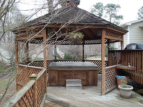 Wonderful one story home is a great neighborhood!! Home has been totally redone. Everything has been painted, new countertops, new stove and refrigerator, new kitchen flooring, hardwoods in dining room have been redone, all new light fixtures, new countertops and faucets in bathrooms. Deck has been cleaned and stained, gazebo has new roof, and garage door has been replaced.