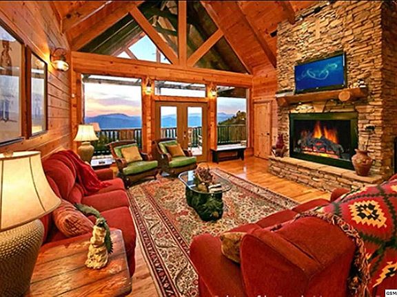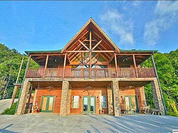 Luxurious Smoky Mountain Lodge with a take your breathe away view. This luxurious log home is finely appointed and quality custom built. On 1.62 acres, it joins the National Park and sits on top of Cove Mountain, totally private, but easy assess and lots of flat parking, drive even comes around to top floor for unloading groceries. Spacious and generous open floor plan, 5 master suites and 4.5 private baths, two handsome river stone fireplaces. Large game area with additional wet bar and second kitchen makes it a fantastic investment if you choose to rent it. Eagles Lodge is in pristine condition. Close in Wears Valley, 15 minutes easy drive from Pigeon Forge