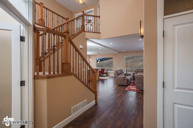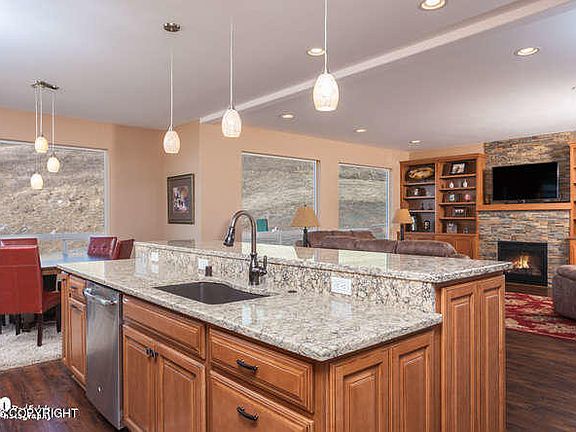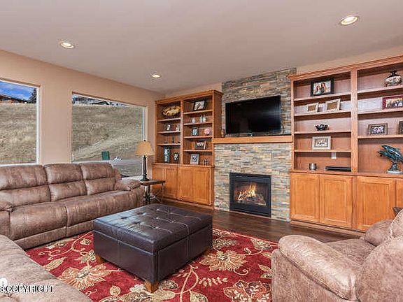Stunning 4 bed/2.5 bath home has a gourmet kitchen,upgraded Cherry cabs with crown moulding, High End SS appliances. Master Suite includes coffered ceiling, WIC w/organizers, Spacious master bath, jetted tub/separate shower. Located in Southeast Anchorage, close to fine dining & shopping at Carrs, Fred Meyer, Dimond Center & the new South Anchorage shopping malls.