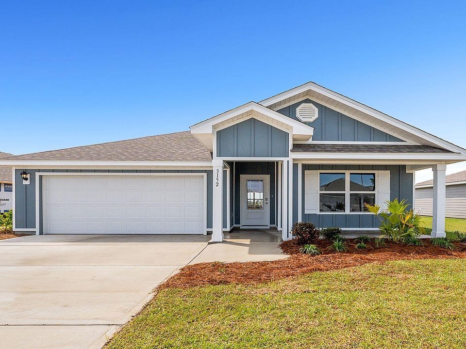 RED TAG SALE!!! Special Incentives for a limited time! As you enter this Cali floorplan you will find traditional 8' ceilings. Engineered Vinyl Plank flooring in all common areas of the home and carpet in bedrooms. Open concept floor plan for entertaining. The kitchen has a center island, a large pantry, White Cabinets with durable quartz countertops. The kitchen is equipped with Brand name SS Range, Dishwasher and Microwave. A standard Smart Home package includes a KwikSet keyless entry, Skybell doorbell, automated front porch lighting, an Echo Dot device, and Quolsys touch panel which can be integrated to control your lighting, thermostat, front door and so much more. A builder 10-year structural warranty is also included. Hodges Bayou is just a short drive to schools, restaurants, beaches, and all that Bay County has to offer. Family time can easily be enjoyed biking or taking evening walks to catch those gorgeous sunsets over the bayou. Sidewalks wind throughout for you to enjoy nature at its finest.