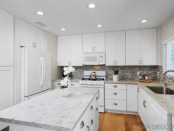 Located in the resort community of La Costa, this stunning home is situated on the edge of Box Canyon with spectacular views. The ultra private, upper end unit was gutted and remodeled in 2017. Upgrades include a new HVAC system, A/C, water heater, vinyl dual-pane windows, hard wood flooring, a complete custom kitchen expansion and much more! The features of this highly coveted floor plan are too numerous to mention. Hurry, won't last!