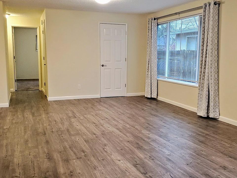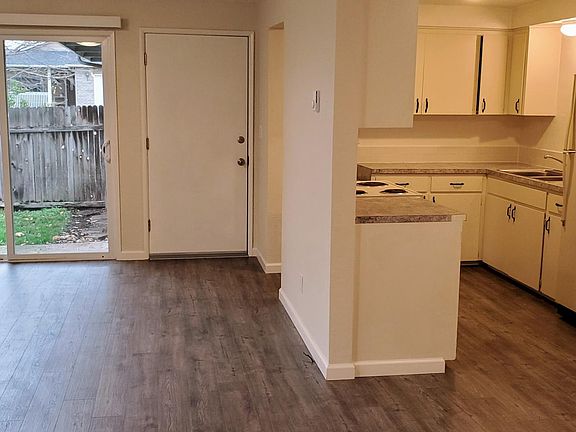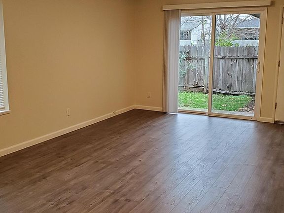 3152 Zinnia, Beautifully updated duplex in great location. Open floor plan with lovely new wood laminate flooring and all new interior paint. Spacious yet cozy with large living and dining room. All new doors, fixtures, hardware and updated windows throughout. Sliding doors off living room to a private courtyard with patio and small, fully fenced back yard. Covered carport and attached storage/utility shed with washer and dryer provided. Very sweet property. River Rd to West on Ferndale, Continue straight, Right on Columbine, Right on Fox Glove, Left on Zinnia.