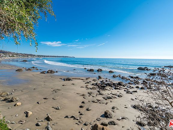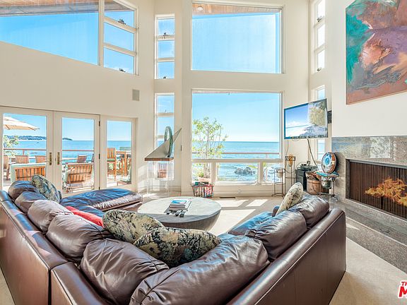 Available July, August, and September 2020. This stunning, contemporary home sits on a low bluff at the northern end of Broad Beach! Located on a private, gated street, the property features soaring ceilings, spacious rooms, limestone floors, and endless ocean views from every level. The southwestern exposure makes for amazing sunrises over Point Dume and picturesque summer days on the beach. On the main level, the living room and kitchen lead out onto a large deck with a spa, plentiful seating, and a private staircase to the beach. Inside, the master boasts a private deck and there is a separate complete guest apartment which is included in the bedroom count. Enjoy the best months of the year in Malibu in this beachfront oasis!