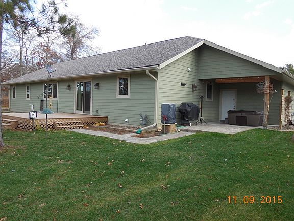 3 BR, 2 1/2 bath 1 level living on approx. 1 acre lot near Sibley Lake, MN. Built in 2013, it has 1850 sq.feet, Portage Hickory kitchen cabinets, 6 panel doors & a heated crawl space for storage and safe room. This very energy efficient home has natural gas heating & central air. It features a patio door walkout to deck with maintenance free decking. Has 3 car attached garage for all your toys & it is wired for a hot tub under the covered porch and wired for backup generator. Has small storage bldg. & circular drive