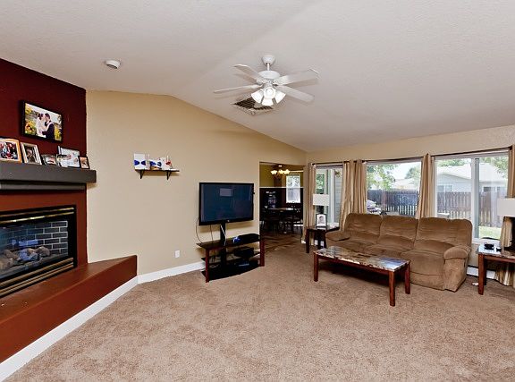 With 3 bedrooms & 2 baths this nice ranch style home contains 1448 sq. ft. & a 2 car attached garage. Step inside & you will admire the vaulted ceilings, spacious living room with a gas fireplace and the natural light offered from the wall of windows which look into the fenced backyard. The kitchen is complimented with a breakfast bar, full appliance package and pantry. The extended dining nook has a bay window, is an open concept to the kitchen and has a door leading to the desirable covered patio. Other great features to this home include a generous yard with RV/Toy parking, fully landscaped with timed sprinklers, separate laundry room, nice master suite with an outside door to enjoy the patio & a split bedroom design. Come and take a look.