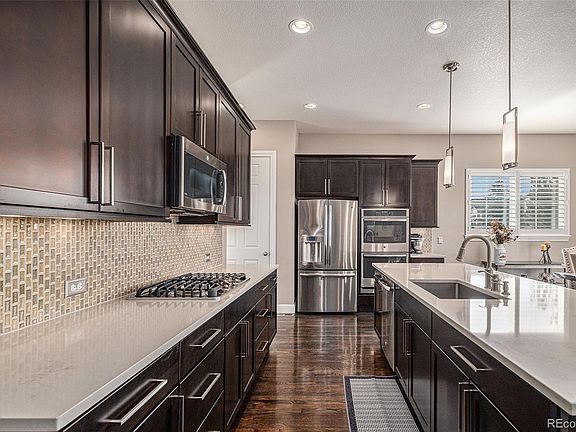 This well cared for ranch home is located on a corner lot of a cul-de-sac! Walk in and fall in love with the open floor plan, hardwood floors, beautiful finishes, and ample storage space. The home office at the front of the home provides the ideal work from home space with a sunny picture window allowing the Colorado sunshine to come through. The heart of the home is a true show stopper and entertainers delight! Chef's kitchen with oversized island, gas range, Butler's pantry, double ovens; this one will make the cook in the home smile. Oversized living room with gas fireplace is the ideal spot to spend football Sundays! Your primary suite is luxurious and serene. En-suite primary bathroom makes you feel like you're in a spa; oversized glass shower, soaking tub, double sinks, and a walk in closet with built in shelving. Secondary bedrooms are spacious and provide ample storage. The unfinished basement provides endless opportunities for additional living space; you can easily fit another bedroom, bathroom, and living room down there! Outside, you'll find a peaceful backyard with mature landscaping; the ideal place for summer BBQ's and get togethers. Terrain is a master planned community with 2 pools, a dog park, walking trails, and tennis courts. The local elementary school is nestled in the heart of the neighborhood as well. Located just east of downtown Castle Rock this picture perfect ranch is ready for it's new owners!