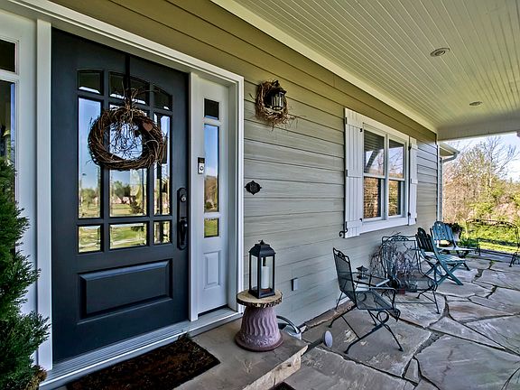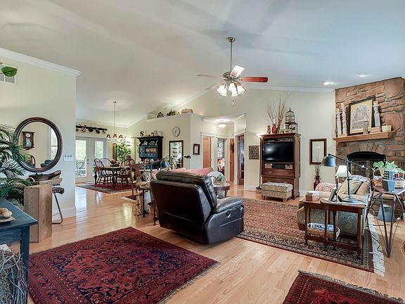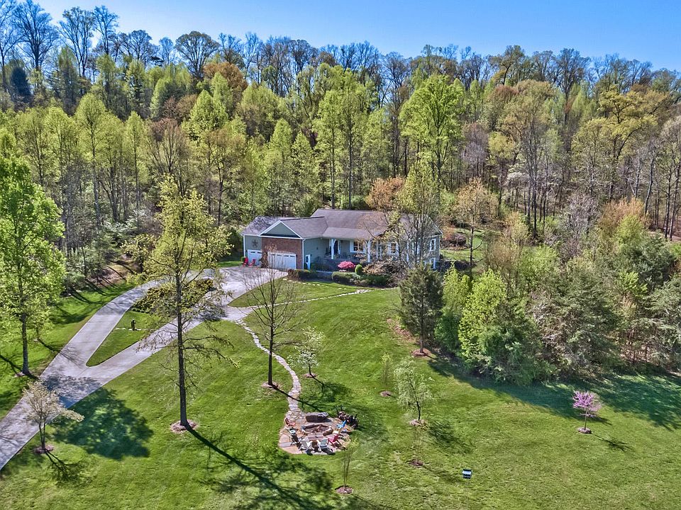 Beautiful custom-built home on almost 10 acres (lots 10, 11 & 12) with complete privacy, large covered front porch with solid wood columns, beautiful circular concrete driveway, extensive landscaping, mature trees including River Birch & Dogwoods, peaceful wildlife, stone hardscape & knee wall, and a 5-level waterfall. Large open floor plan, solid hardwood floors throughout most of main level, 4 fireplaces (all 3 interiors are gas and exterior on screened porch is wood burning), high ceilings, oversized crown molding, solid wood craftsman style doors, egg shaped brushed nickel door hardware, all brushed nickel fixtures, lighting etc. Large screened porch w/cathedral ceiling, stone covered outdoor fireplace, tongue and groove wood ceiling and walls, overlooks incredibly beautiful and completely private backyard. Large main level master suite has 9' ceilings, ceiling fan, and a walk-in closet also with wood floors. Master bath has an oversized walk-in shower w/tile from floor to ceiling including an upgraded decorative tile inlay and bench seat, separate jetted tub with tile surround, oversized crown molding in the master bedroom and bathroom as well. Main level office with solid wood French door opening and main level guestroom with a walk-in closet. A full bathroom conveniently located near the office and guestroom has tile flooring, walk-in tiled shower, marble countertop and upgraded fixtures. Large family room with cathedral ceilings and corner stone covered fireplace w/raised hearth and wood mantle. Kitchen is completely open to the family room and dining area, has beautiful updated pendant lighting, large breakfast bar with granite countertops, high-end stainless steel appliances including compactor, gas range, microwave and dishwasher, custom solid wood quarter sawn oak cabinetry, stacked and staggered design with oversized molding, some glass doors, gorgeous oversized custom farmhouse sink, brushed nickel fixtures, tile backsplash, tile floors and TWO pantrie