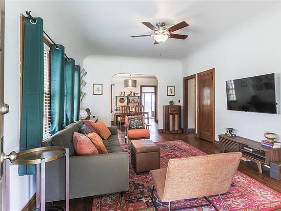 Welcome to 3153 NW 24th Street, nestled in the heart of Oklahoma City's historic Denniston Park neighborhood. This 2-bedroom, 2-bathroom home is brimming with character and unique details that are sure to impress. As you enter through the arched front porch, you'll be greeted by the warmth of hardwood floors and the timeless appeal of the living and dining areas. The kitchen features updated butcher block countertops, a tiled backsplash, and a farmhouse sink, combining classic style with modern functionality. The primary bedroom is generously sized and includes an ensuite bathroom and closet. The second bedroom, with its own exterior entrance, offers versatile space for various uses. Conveniently located near NW 23rd Street and May Avenue, this home provides easy access to Oklahoma City's amenities, dining, and entertainment. Schedule a private showing today and explore the possibilities of making this charming home your own!