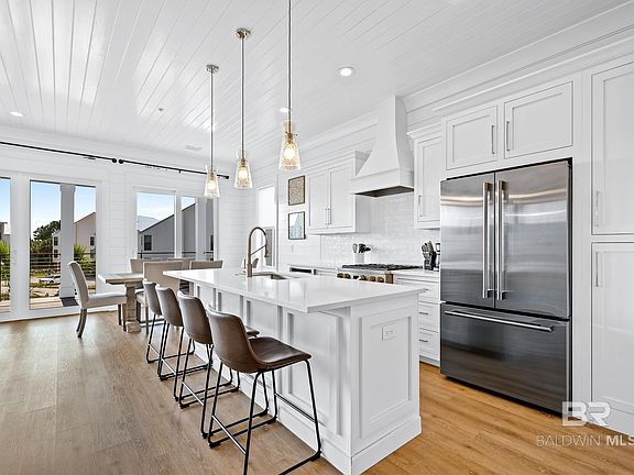 Beautifully furnished home in The Osprey - a new waterfront community on Cotton Bayou. If you enjoy boating in Orange Beach, this is the spot for you. This home conveys with a LARGE 47' COVERED BOAT SLIP! This home features Fortified Gold Construction, 10' ceilings, GE Monogram appliances including a gas range and under cabinet ice maker, custom cabinets, quartz countertops, custom tiled showers with glass shower doors, wood ceilings and shiplap walls, spray foam insulation in the attic, an Elevator that services all floors, outdoor shower, nautical handrails, IPE decking, EV plug, and an on-demand hot water heater. Relax on the spacious back porch where you have views of the beautiful Orange Beach sunsets, and both the Gulf of Mexico and Cotton Bayou. The development features a large zero entry pool with sun shelfs, brick paved streets, and a marina. This is a great home to use for yourself or as a rental investment. Vacation rentals are allowed. Prime location in the heart of Orange Beach with the best of both worlds - boating and beach. The Osprey is just a short walk to the beach and short boat ride to Perdido Pass and world class fishing along with many popular waterfront bars and dining destinations including Zeke's, Cobalt, Tacky Jack's, Flora Bama Yacht Club, and more. This is a must see! Buyer to verify all information during due diligence.