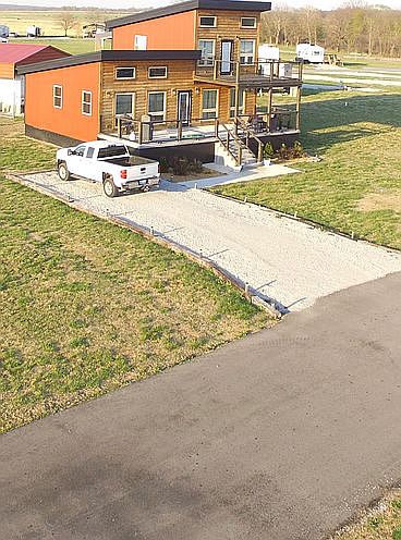 Beautiful 2 Bedroom 1400 sqft home Open floor plans with natural sunlight making it feel very comfortable and relaxing. The Flooring through out this home is beautiful.Spacious kitchen with nice food pantry. Will make cooking that much more enjoyable.All appliances are Samsung brand and will remain in the home. Bathroom is very spacious with a tub & shower combo and Linen closet .Laundry room has Front loader washer & dryer set with extra storage area .Coat closet right inside front door. Bedroom is very roomy plenty of room for a king size bedroom suite.Nice double door deluxe closet. Nice size windows are also in this room. Second level of this beautiful home is a very spacious bedroom/ office room .Windows Windows Windows make this room extra spectacular plus the bonus to this lovely room is the door open up to a enclosed deck with gorgeous view . Matuare trees and glimpse of Grand Lake what a way to start your day or end your day watching the sunset . Full closet and ceiling fan which are also in first floor rooms. This beautiful home was built in 2022 , has been very well maintained. Full front porch great for entertaining or nice quiet cup of coffee time. It is located near the new Grand Meridian shopping center as well as few restaurants. Golf course less than a mile and 7 miles from the Heartland theme park which has broken ground already . Admendites on the property for your enjoyment are a Pool, Club house, Play ground area and fishing hole / pond.Summer time events which always includes Live entertainment, food trucks, bouncy houses much more .This will make someone a very nice home, vacation/weekend home or your next investment opportunity. I strongly believe you will fall in love with house and the area. Please feel free to contact me if you should have any questions. Shown by appointment only . No rent to own. Master Bedroom 12'x16' Living Room 16'x20' Kitchen 11'x17' Bathroom 10'x16 Stairs 4' Upstairs Room 16'x19' 2 Car Driveway Home sits on a concrete/ no wheels and also a large craw space opening hide on the west side of home . $350 monthly fee- that covers Trash Sewer Water Lawncare Snow removal It is not a homeowners association fee.