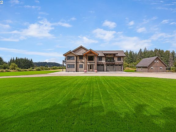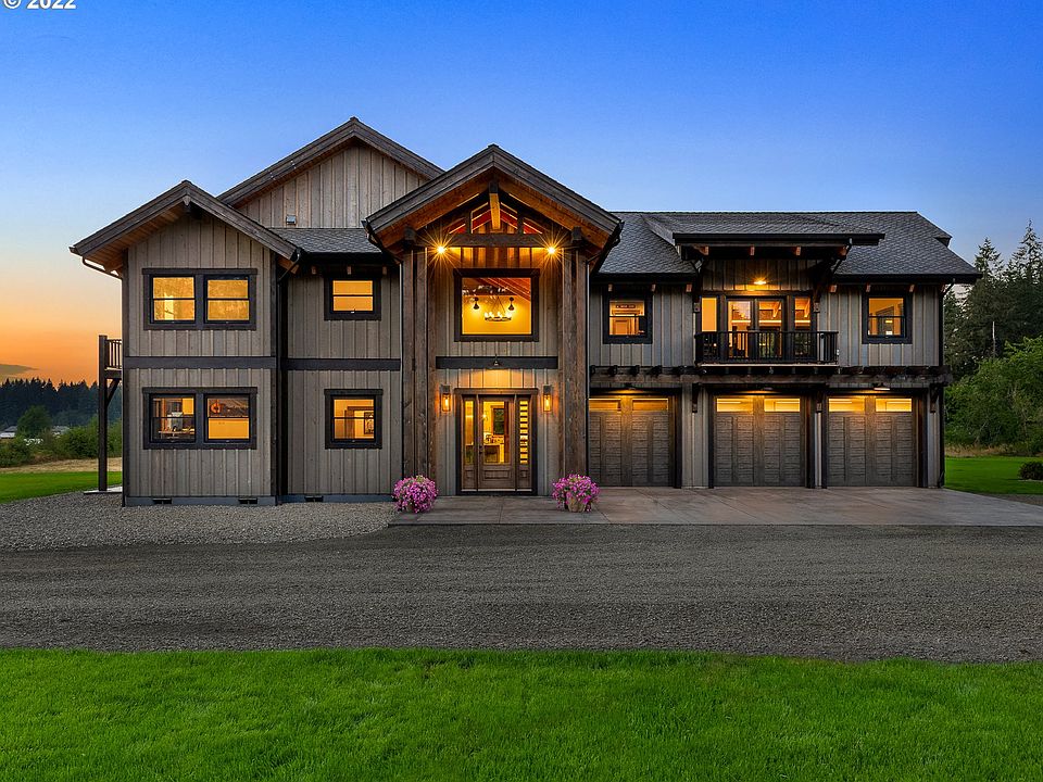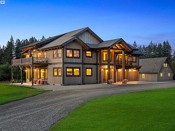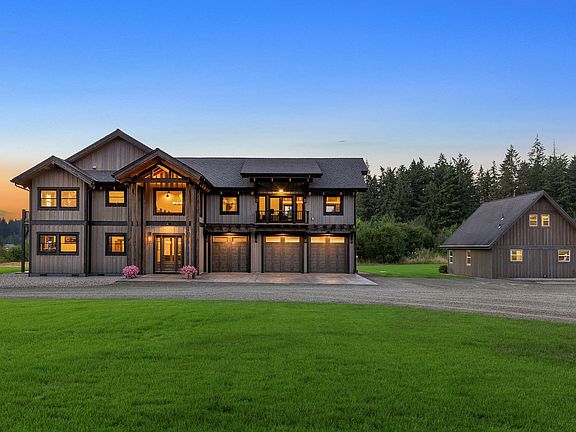 Light-filled rustic contemporary home, newly built by DC Builders, pinnacle of heavy timber structures, offers this stunning Estate on 5.95 acres. Open floor plan with high-end finishes. 2-story tall grand foyer w/ heavy timber ceiling & floating staircase. Kitchen with large Island & Thermador appliances. Primary suite boasts 16' ceilings & private 10'x32'deck. Massive bonus room with deck. Each of 3 upstairs bedrooms has full ensuite bath. 30'x36' barn & detached 1,200 sq ft guest quarters!