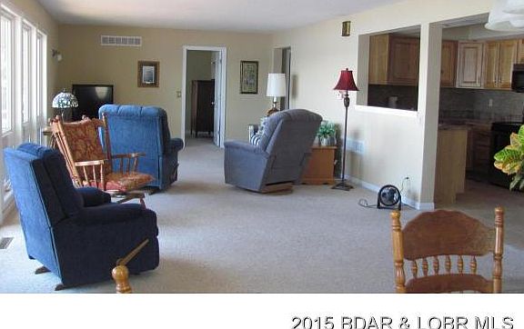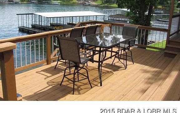 Killer view with a gentle lakefront lot, just off main channel. Highly maintained home with new windows, HVAC, and 40 yr. roof. Open living space includes dining, living, kitchen, with beautiful hickory cabinets. Three bedrooms, 3 baths, and attached garage at 6mm of the Gravois arm.