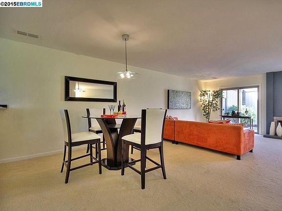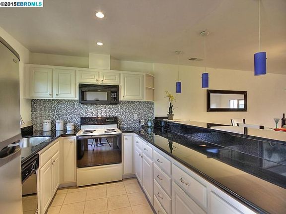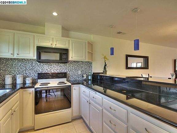 Clean and chic F-model facing greenbelt. Updated kitchen with granite counter tops & mosiac backsplash. Dual paned windows, sliding doors & private patio, Light and bright with an open floor plan. Good sized master. Vaulted ceiling in third bedroom. Close to pool, clubhouse, tennis court & shops.