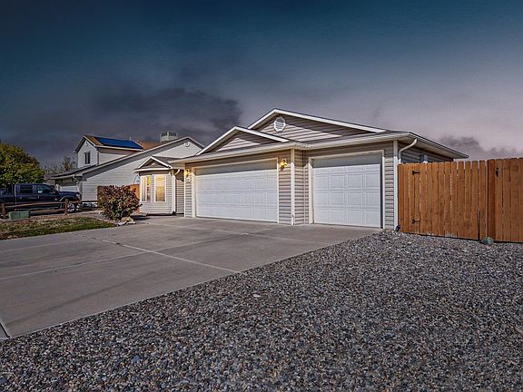 Welcome to Grove Creek Subdivision—where homes rarely come on the market with a 3-car garage like this! This Southeast Grand Junction ranch offers just under 1,500 sq ft with 3 bedrooms and 2 baths, plus excellent RV parking and a spacious lot that backs to open space with views of the Bookcliffs. Inside, you’ll find a large living room with vaulted ceilings and a gas fireplace, a bright kitchen with a new Samsung stove and microwave (all appliances included), and a comfortable primary suite with patio access. A hard-to-find opportunity in Grove Creek offering space, views, and a 3-car garage. Ready to move in and call home!