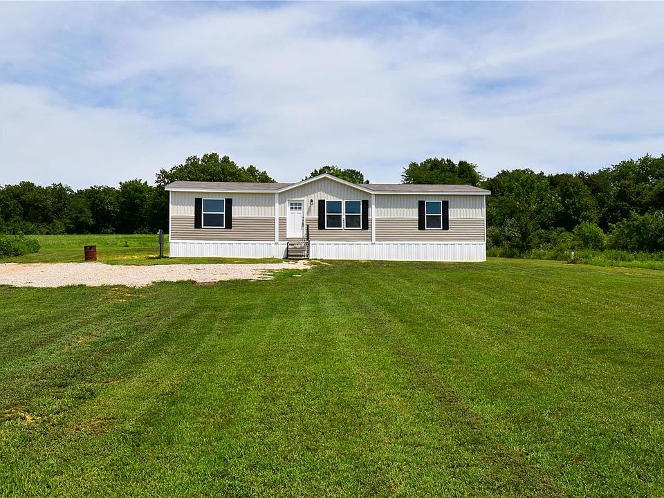 Less than 1 year old, basically brand new manufactured home on just over 4 acres! Tucked back away from the road and neighbors you will love the secluded and peaceful feel! Home has gorgeous modern farmhouse finishes. The divided bedroom floor plan offers a large primary suite w/ 2 walk in closets and double sinks in the primary bathroom. The other 2 bedrooms also have walk-in closets. Open concept kitchen, dining and living room. Kitchen offers an abundance of cabinets and large center island with breakfast bar. Schedule your showing today!