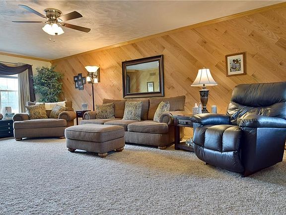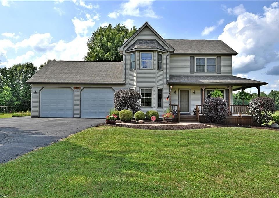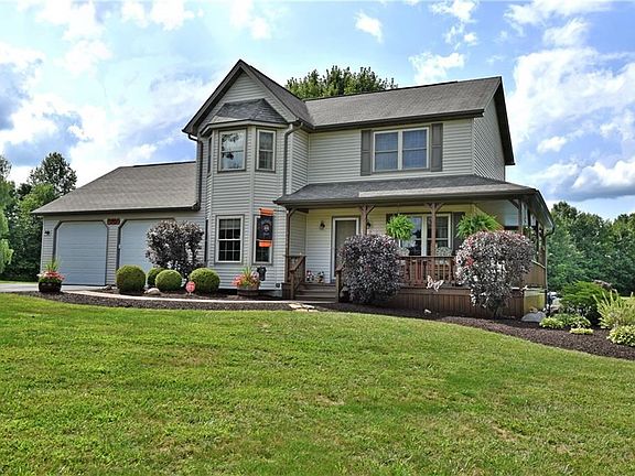An exquisitely handsome two-story home with a massive back yard (3.19 acres), serving as your own private resort! This home immediately draws you in with its double set of bay style windows and the inviting covered porch wraps around the side of the home, leading to an outstanding rear deck. Here, carefully designed and well-manicured landscaping combines mulch beds and stone pathways to focus around an above ground pool. serene decorative pond and waterfall to enjoy your summer nights. The lush back yard seems to continue on forever. Inside, hardwood style floors fill the majority of the first floor as the dining and kitchen areas branch off from the foyer. The stylish kitchen is complimented with a stone backsplash and stainless-steel appliances set within the rich wood cabinetry. An additional dining area is located before rear deck and offset laundry room entrances. Opposite the home, an expansive carpeted living room offers wood panel wall décor and a rustic wood burning fireplace. A half bath and basement entry separates it from the kitchen. Upstairs, three gorgeous bedrooms each offer unique styles and overhead views of the backyard. The master bedroom is complete with a front facing bay window along with a walk in closet and private full bath area. A full basement and an amazing 28x32 detached garage that is insulated and has a furnace for use (gas line available). This is a lifestyle not just an amazing home. Call today!