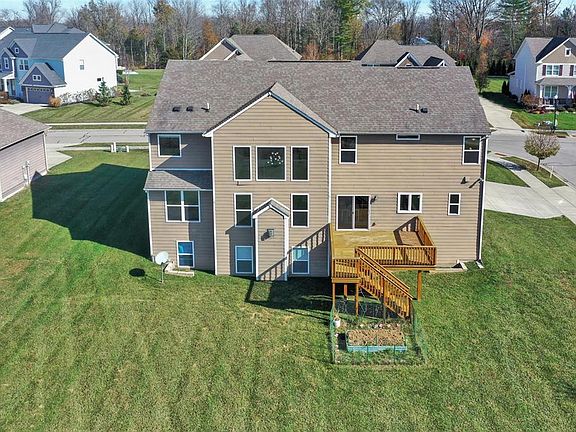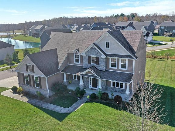 Rarely find this gem in the popular Fox Ridge. 5 bed, 3 bath, office, loft. Two story high ceiling & open Fam Rm w/windows wall, newer chandelier & gas FP. Good size DR features wainscot & tray ceiling. Laminated hardwood flooring and 5 bed on main. Dual stairways with privacy between primary suite and other bedrooms. Gourmet kitchen is equipped with center island, stone back splash, gas cook top, double oven, big walk-in pantry. Huge primary suite features tray ceiling, granite double vanities, tiled shower room, her & his walk-in closest w/shelves. Big bonus you can enjoy two story high deck overlooking the nice backyard and pond. Giant unfinished basement has daylight windows, 9' ceiling, bath plumbing rough-in. Ready for quick move in.