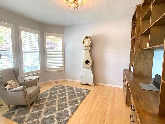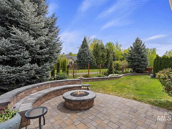 Discover the East Boise lifestyle you've been longing for at Spring Creek in Harris Ranch. This stunning home boasts lush, mature landscaping and backs onto open space, offering direct access to the community trail right from your backyard gate, leading to miles of the Ridge to Rivers trail system.Welcome guests and neighbors on your inviting covered, wrap-around front porch. The renovated kitchen is a culinary delight with granite countertops, an apron front farmhouse sink, 5-burner gas cook-top, custom cabinetry, and a butler pantry/beverage bar.The backyard is upgraded, featuring a spacious covered patio, a paver fire pit, and stone bench seating area overlooking a manicured yard.2023 Upgrades include a new furnace, AC unit, dishwasher, and closet systems. The oversized 3-car garage includes a 4th tandem stall with double doors providing easy backyard access.The home offers flexibility with a huge 5th bedroom that easily converts to a bonus room.