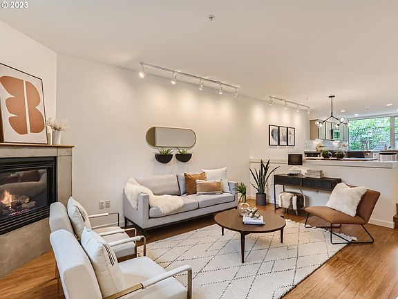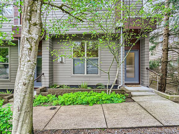 OPEN SUN 5/21, 12-2PM. Welcome to stylish and sustainable Dolph Creek Townhomes. With its LEED-Silver distinction this contemporary home was built mindful of the future without forsaking design. Coveted end-unit offers two ensuite bedrooms up and open-concept living space on the main, equally perfect for lively entertaining or relaxing with loved ones. Natural light streams in from oversized windows throughout. The high ceilings, contemporary cement-surround fireplace, and bamboo flooring emit warmth and sense of quality. The striking kitchen is well-appointed with stainless steel appliances, concrete counters, and Calcutta marble backsplash. Brand new, never used, refrigerator and stove. Adjoining kitchen is an outdoor balcony, perfect for AM coffee while reading the headlines. Upstairs primary suite offers vaulted ceilings, another spectacular window, walk-in closet, and private bath w dbl sink vanity. A second ensuite bedroom and conveniently located washer & dryer also found on the upper level. Lowest level provides separate back entrance and rare oversized two-car tandem garage with abundant storage. Dolph Creek Townhomes were built to reflect energy efficiency, air quality and sustainability. Home Energy Score 10 out of 10! Located mere blocks to popular Multnomah Village's cafes, pubs, and shops. Easy access to OHSU, I-5 freeway, and 10-minutes drive-time to downtown. [Home Energy Score = 10. HES Report at https://rpt.greenbuildingregistry.com/hes/OR10179668]