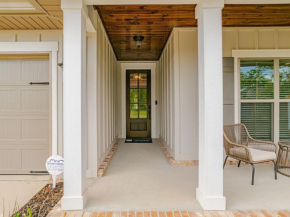 HIGHLY sought after SANTA FE floorplan by TRULAND HOMES awaits in The Village at Rayne Plantation! This fabulously designed plan boasts grandiose 12' ceilings in the foyer and great room and upgraded hardwood floors in primary bedroom, kitchen, breakfast area and family room. Kitchen is a chef’s delight with painted cabinets, accent colored island, gas stove with convection oven, Samsung “smart” fridge and contemporary hardware and plumbing fixtures. The primary suite with trey ceiling is located on the back of the home and provides ample space for king size bed and heavy furniture. Large "curb-less" shower with bench and decorative floor tile, large primary closet and upgraded, gray painted cabinets tie in to the elegance of this functional plan. This plan offers a private work space off great room that has built in cabinets and “pencil desk.” Mud bench off entry to 2 car garage leads to laundry room with stand-alone soaking tub and fabulously designed tile flooring. Enjoy the serenity of the large covered patio that overlooks a wooded greenspace. Proudly Gold Fortified, the tankless water heater, wider door frames, comfort height toilets, irrigation and connected home package are just a few more of the amazing features this home has to offer.
