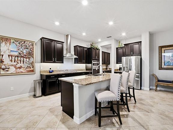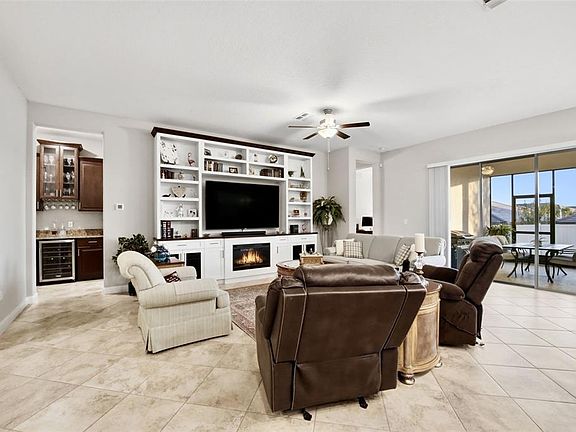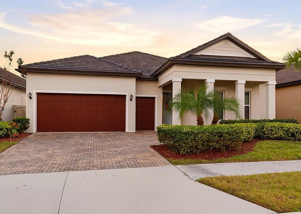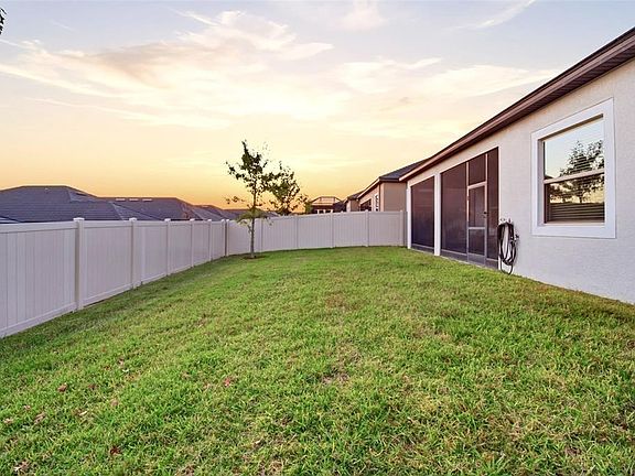 Enjoy MAINTENANCE FREE living in the 55+ GATED Medley section of the Mirada Lagoon Community, in this meticulously UPGRADED Halos model (Radiance Series) which offers 3 bedrooms, 2.5 baths, and 2,350 sq. ft. of thoughtfully designed living space—truly exceptional value for discerning buyers. Great CURB APPEAL with Concrete flat tile Roof, Tropical Landscaping, Brick PAVER driveway, walkway and COVERED front PORCH! Once inside, Elegant Foyer greets you with 17" ceramic tile on diagonal and TRAY ceiling separating guest wing (secondary bedroom and bath) from Common area. Split bedroom plan offers the expansive owner’s suite, featuring a luxurious bath with dual sink areas and separate mirrors, along with a generous walk-in closet complete with custom organizers and a stunning quartz-topped center island. The STUNNING state-of-the-art kitchen is OPEN to the Great Room and provides abundant storage, center Island breakfast bar, Butlers pantry and WALK in pantry while a versatile flex room serves perfectly as an office, den or guest retreat. Great room OPENS to screened rear lanai which overlooks the partically FENCED (3 sides..just needs gates to complete) backyard to enjoy the Florida sunsets! A second-floor storage room helps keep your home organized and clutter-free. This property is MOVE IN READY and loaded with over $40,000 in premium upgrades, including a seco custom-built butler’s pantry with wine cooler, Culligan whole-house water softener and carbon filtration system, custom entertainment unit with electric fireplace in Great room, upgraded GE Profile appliances (plus a 2024 refrigerator), 42” wood laundry cabinets with utility sink, and custom organizers in all three walk-in closets. Additional highlights include upgraded lighting and fans, and energy-efficient systems such as a Carrier 15 SEER AC and a 2024 hybrid 50-gallon water heater for low energy bills! Best of all, Medley’s exterior maintenance provides true peace of mind, with services including full lawncare (mowing, mulching, trimming, blowing, fertilizing, and insect control) plus scheduled exterior painting every seven years. Added value continues with a Tier 1 pest-control system with bait stations and a yearly termite bond, along with the additional storage space in the upstairs room off the 2 car garage with GOLF CART garage parking too! This is the perfect blend of luxury, convenience, and carefree living in the Resort Style 55+ section of MEDLEY in Mirada offering exclusive amenities including Clubhouse, onsite restaurant, beach entry pool, pickleball courts, fitness center, ballroom with banquet facilities and planned classes, activities, events and excursions. Located North of Tampa, just off Major highway for easy access to Wesley Chapel, Ocala, Orlando, Lakeland, Airports and Florida Beaches! CALL TODAY to see why this IS the place to BE!