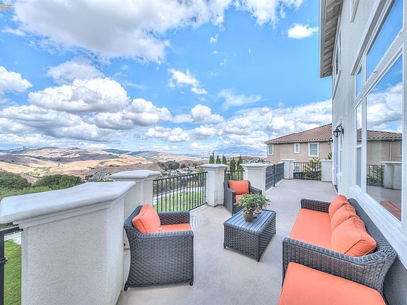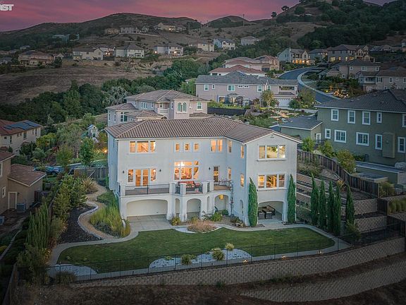 Special Toll Brothers reserved home built in 2011 and occupied by builder's executives as home/office until 2017. Current 1st homeowner kept the unique Black & White themed décor, including ornate chandeliers in every bedroom and bathroom. This spacious estate perched on .43 acres with elevator has spectacular views of Mount Diablo. No steps to the front door (wheelchair accessible). This home has 5 BR (1 room located on the 1st floor with full bath), 5 full bath & 2 half bath. The Master bedroom with spa like bathroom offers huge double vanity, oversized walk-in shower, large soaking tub & a premier spacious walk-in closet. All bedrooms have walk-in closets as well as their own full bathrooms. The gourmet kitchen offers a Thermador 6 gas burner stove with griddle & double oven, a commercial grade over-sized Thermador refrigerator, an additional Professional Thermador oven with rotisserie & dehydrator, double sink, prep sink, walk in pantry & so much more. The spacious family room has built in cabinetry, butler/bar area between the living room & family room. Don't forget the elegant staircase with rod iron railing detail and elevator for luxurious convenience. Take in the panoramic view and beautiful sunset as you overlook the valley below.