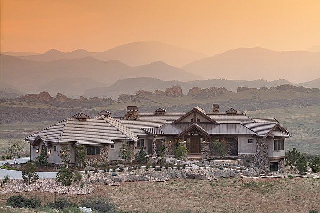 Mountain traditional with European influence. Stone and timber both outside and in. Unobstructed views all directions from the top of the ridge, including the Devils Backbone, front range, Longs Peak, and Hidden Valley. In addition to the Master and guest suites on the main floor, 2 more guest suites plus dedicated high end theater, temperature controlled collector’s wine cellar, office, exercise area, incredible bar, and separate living area in the full walkout lower level. Granite counters throughout, Monogram appliances, 4 fireplaces, solid hickory floors, much more.