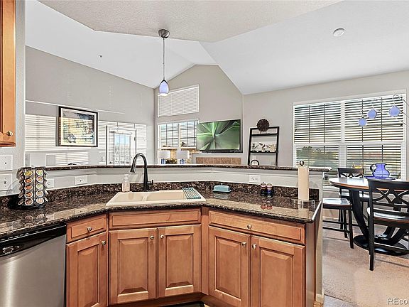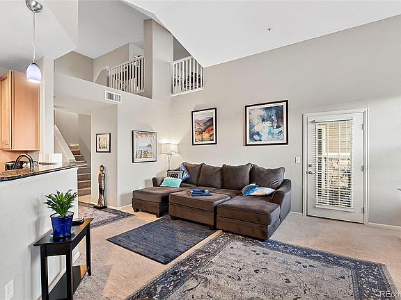 Desirable Blue Sky Development at Vista Ridge is a fantastic location with resort-like amenities and steps away from the highly admired Colorado National Golf Course. This beautiful condo has outstanding, west facing views overlooking the Pikes Peak mountain range. Step inside to find the spacious open living area with vaulted ceilings and a charming fireplace. Step into your conveniently located kitchen to find granite countertops and plenty of storage space within the kitchen island. The main level contains two large bedrooms, both complete with full bathrooms. Walk out onto your main level balcony that gives you uninterrupted views of the beautiful Colorado sunsets. Venture up the stairs into the sizable loft that overlooks the main living room. Down the hall is your master bedroom with its own full bathroom, walk-in closet, and the second private balcony.