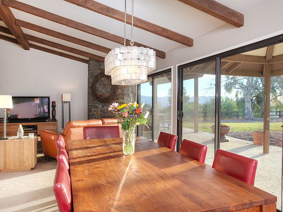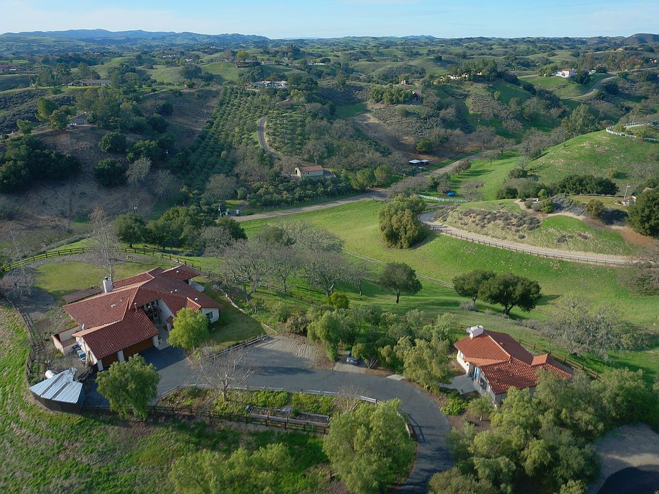 Gorgeous Santa Ynez Valley hilltop views! 5.9 acre estate with two homes. Main residence over 2600 sq ft has 4 bedrooms and 2.5 baths. Spacious rooms and vaulted ceilings, wood-burning fireplace, air conditioning and 3 car garage. Second residential unit has one bedroom and open floor plan with private yard and spectacular views. Fenced and cross fenced for animals, privacy and the joy of the Santa Ynez lifestyle. Located in Oak Trail Estates with private water, and only minutes into town!