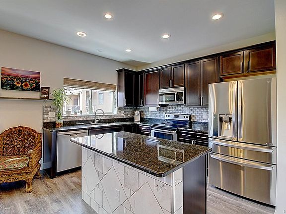 3 stops to union station! GORGEOUS 2 Master Suite townhome in Sage Valley! East-facing patio with no direct neighbors, and sunrise views! Home has been professionally upgraded from floor to ceiling, including motion sensor lighting, USB outlets, extra storage in the finished garage w/ extra storage closet and in-wall fire safe--perfect for a craft room, storage, etc. Custom window coverings, Nest Thermostat, LED lights, and smart speakers in Kitchen and Master. Main level has newly-installed laminate wood flooring, and open floor plan; Living Room has gas fireplace and sliding doors to covered maintenance-free deck, Dining Room, and Kitchen. Kitchen features granite-slab countertops, decorative tile backsplash, walk-in pantry, and center island with storage & breakfast bar. Upper level has 2 Master Bedrooms, each with ensuite and walk-in closets. One has private deck and custom barn-wood wall! Completely master keyed for easy Airbnb set up. Call now to schedule your personal showing!