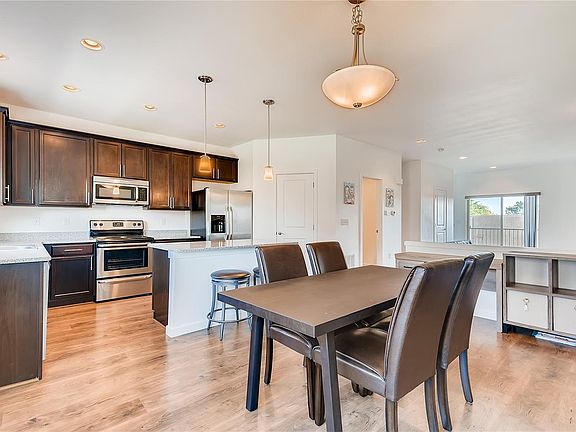OH SAT 11-2. This 2017 gorgeous 3 story townhome-style upgraded Condo still feels like new & features an open floor plan with 9' ceilings; kitchen w/pantry, SSA, island, granite countertops, laminate wood flooring; dining & great rooms; double master bedrooms w/ full ensuite bathrooms w/granite countertops, tile flooring & walk-in closets; 2 balconies, fireplace, central ac & oversized garage. Take a tour--1st floor is your garage, spacious mechanical room & closet. Ascend to the 2nd floor & you'll find your main living space; continue up to the 3rd floor where you will find your incredible bedrooms, luxury bathrooms & conveniently located laundry. Close to everything-quick access to highways, shopping, dining, Riverside open space, Thornton Rec Center- Upon the opening of the N Line light rail station that is just a short walk from home, your commute to Denver will get even faster! You will have more time for the things you enjoy w/the HOA maintaining all of the exterior, incl roof