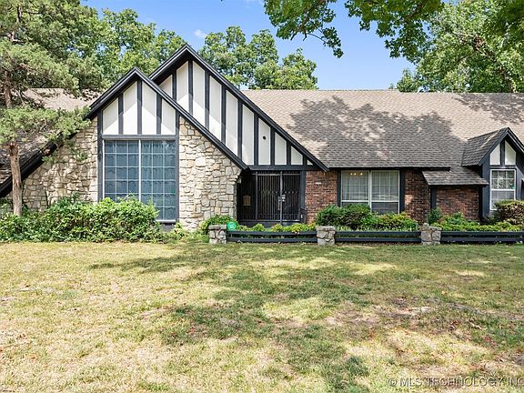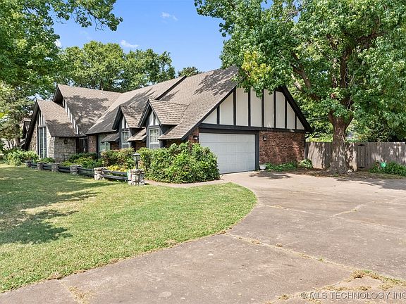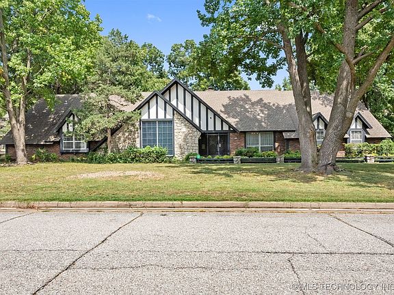 Freshly remodeled, English Tudor ranch on large corner lot in south Tulsa. Warm hardwood flooring welcomes you into this renovated home. Two large living areas, massive formal dining, eat in kitchen, wet bar, private outdoor living area with a fully fenced yard is perfect for entertaining. Main bedroom's spacious bath includes two person walk in shower, soaking tub, and granite. Split bedroom has private bath and would be great for a home office. New energy efficient tankless water heater will ensure you never run out. New roof this year with transferrable warranty. Enjoy the convenience of being right off Harvard Ave yet privacy and shade from mature trees that nestle you into this home.