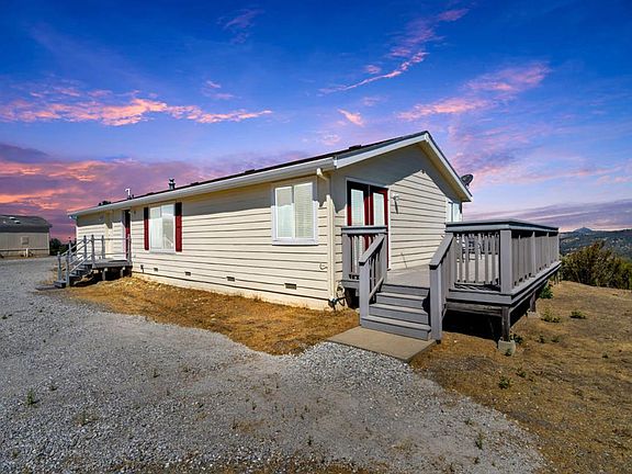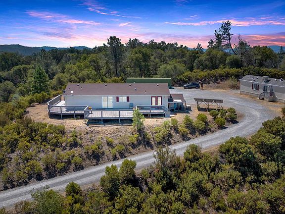 This property is the perfect combination of beautiful views, privacy, 52 acres of agriculturally zoned land and 2 homes close to town. The added plus is that there is no PG&E bill since solar energy helps powers everything including the 50 gpm well, which fills the 2600-gallon storage tank! There is a generator back-up system (14kw) The property boasts 300 sunny days per year! The main house is 1624 sq ft with lots of light and an open concept. It has 2 master suite bedrooms and 2 baths, one with a Jacuzzi tub. The second house is a perfect guesthouse or in-law unit. It is 728 sq ft with 2 bedrooms and 1 baths. Both homes are manufactured homes on permanent foundations. Enjoy the views and sunsets from the 1850 sq ft Trex deck to enjoy the beautiful sunrises and sunsets. The road is paved to the gated entrance onto the property. Storage container (10'x40') is included.
