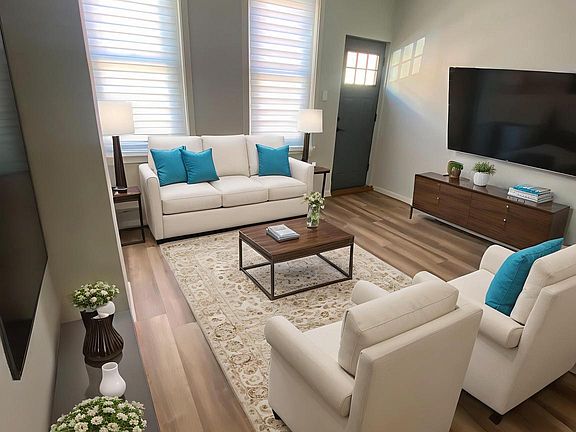 Step into luxury starting with high ceilings in this lovely finished basement rec room oasis with an additional room in the rear for office or possible 3rd bedroom complete with a state of the art half bath. The first floor has new ceilings and walls exquisitely done to go with the perfect brand new vinyl floors, a fantastic modern design. There is an extension of the living room that can be used as a dining room that flows into a huge modern eat-in kitchen with 3 year old cabinets, brand new stone counter and stainless still sink, new stainless steel refrigerator and stove with plenty of room for a table. You won't be disappointed in this spacious rear yard perfectly situated at the end of the row. Of course there are all new light fixtures, custom window treatments and a brand new state of the art EPDM roof with life expectancy of 30 years. The heater is 8 years new as well. The 2nd floor besides having the same brand new flooring, walls and ceiling as the first floor in its 2 great size bedrooms and a brand new full size bath.