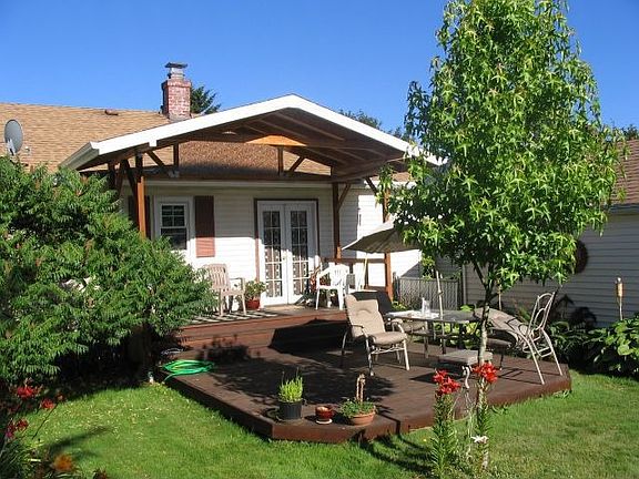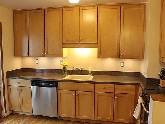 Immaculate remodeled 1945 Cape Cod style home near Rocky Butte. Kitchen on main floor has hardwood floors and opens via French doors to a covered deck, wonderful for relaxing or entertaining friends and family in fenced back yard. Main bedroom, second bedroom, updated windows, and bath also on main level. Lower level has been completely finished with space used for third and fourth bedrooms, a family (second living) room, a second kitchen, and a second bath. Great opportunity for a rental property with two complete living spaces. Over-sized detached garage has a work bench with windows and more room for storage. Hot tub next to covered back deck. Lower rooms may lack egress/ingress.